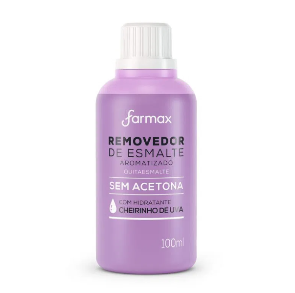 Contém: 01 Frasco Removedor de Esmalte sem Acetona Farmax Uva (100mL)