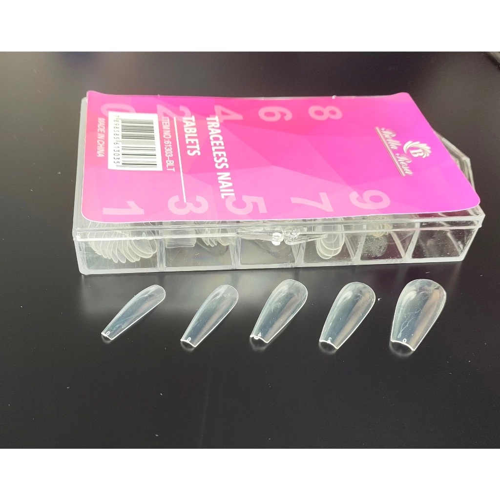 Caixa contendo 100 unhas do tipo Postiça com formato Bailarina Realista da marca Bella Rosa.