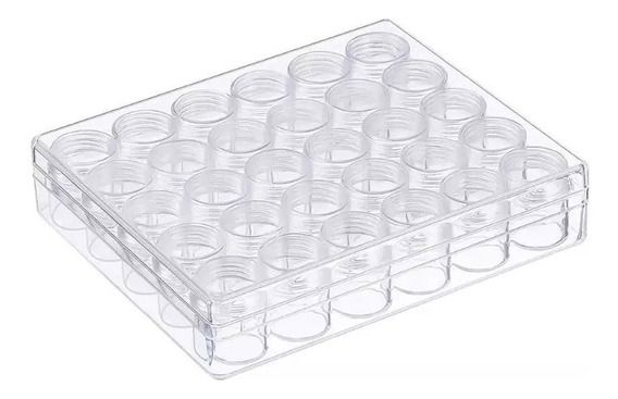 Caixa acrílica com 30 potinhos para armazenamento de glitter/pedra strass.