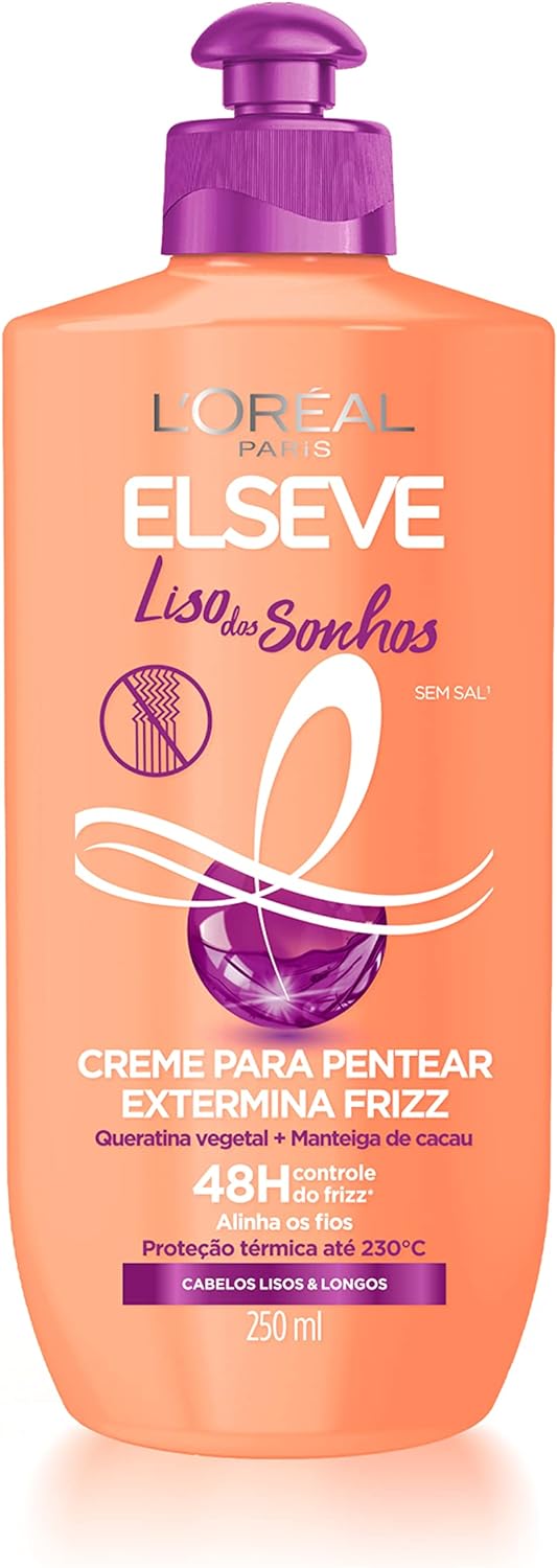 O maior inimigo do cabelo longo e liso é o frizz, com queratina vegetal líquida e manteiga de cacau em sua fórmula, a linha Elseve Liso dos Sonhos trata o cabelo da raiz até as pontas, controlando o frizz por 48h e alinhando os fios. A linha nutre, hidrata e prolonga o efeito liso nos fios, deixando o cabelo super brilhoso e macio.