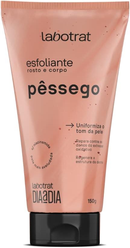 O Esfoliante Labotrat - Pêssego é excelente para iluminar, hidratar e minimizar o estresse oxidativo da pele. Sua fórmula com um concentrado de óleo de rosa mosqueta, auxilia no processo de clareamento de manchas, de redução de rugas e linhas de expressão, de estrias e também no combate à acne. A aplicação promove uma pele mais aveludada. Uso corporal e facial.