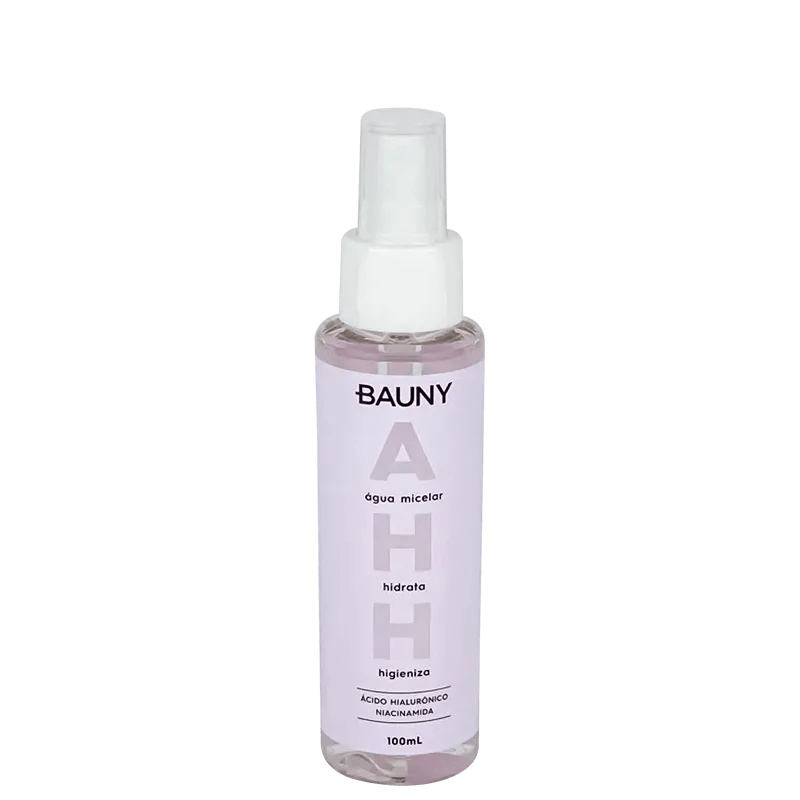 A água micelar da Bauny contém em sua formulação ativa que mantém a pele hidratada e reduz a oleosidade, como ácido hialurônico, conhecido por manter a sustentação da pele e niacinamida, com propriedades iluminadoras e clareadoras.