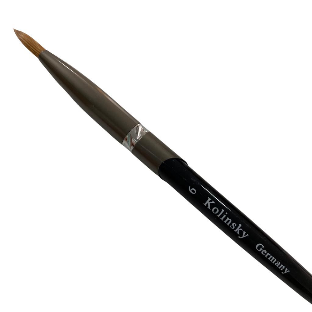 Incrível Pincel Kolinsky Germany com cerdas naturais, foi projetado para absorver menos líquido e fazer aplicações nas unhas, com melhor controle do produto e um cabo projetado para dar maior conforto para que o manuseia.