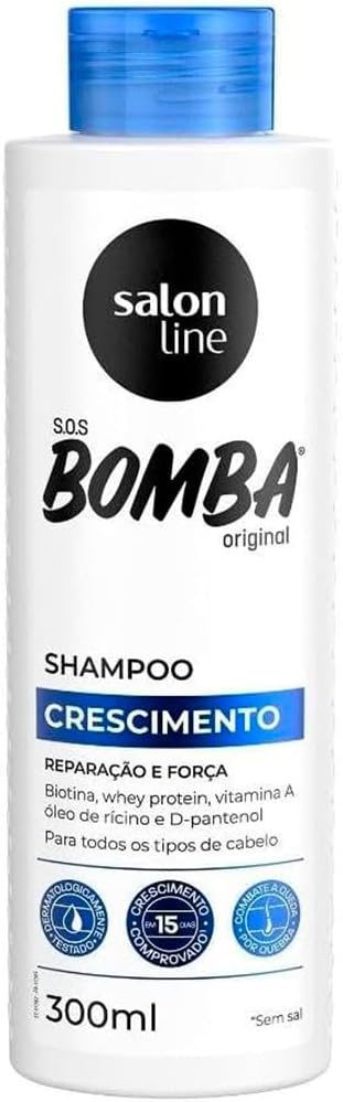 O Shampoo S.O.S Bomba Original conta com fórmula dermatologicamente testada e rica em ingredientes que garantem crescimento capilar comprovado em 15 dias, cabelos mais fortes, recuperados e saudáveis.