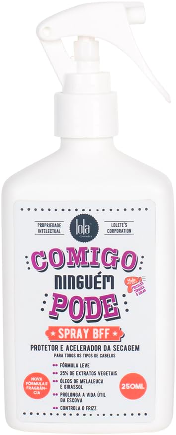 O Spray BFF das Mechas da linha Comigo Ninguém Pode de Lola Cosmetics é um protetor e acelerador de secagem. Protege os cabelos das agressões dos procedimentos químicos e mecânicos, prolongando a vida útil da escova e da chapinha. Proporciona secagem dos fios 3 vezes mais rápida e ainda trata e acaba com o frizz que tanto incomoda. Economiza tempo e evita os retoques.