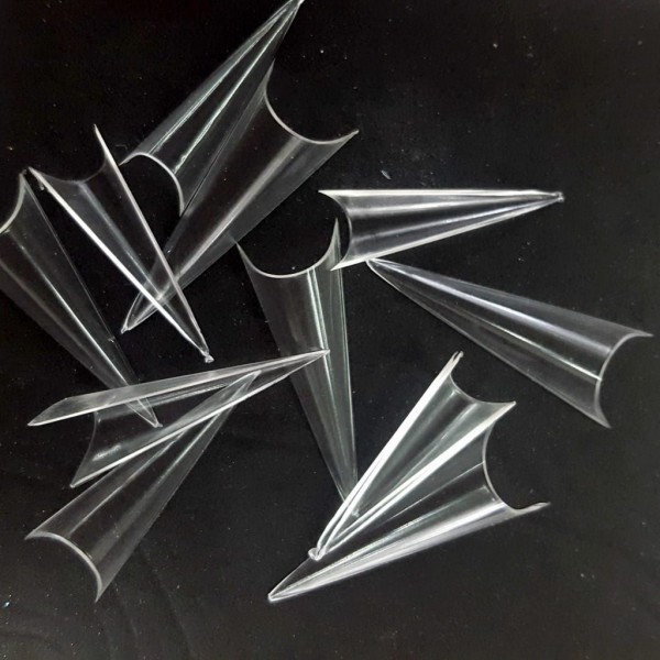 Estão disponíveis apenas em cores naturais. A Ultrawear e Ultraclear possuem uma longa área de contato com a unha.