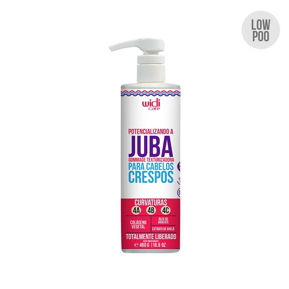 Potencializando a Juba Gommage Texturizadora Condicionante 480g: Um finalizador projetado para a definição de cabelos crespos, com proteção térmica e brilho. Contém óleo de linhaça, extrato de avelã e colágeno vegetal, mantendo a cutícula capilar preservada, aumentando a elasticidade e controlando o encolhimento dos fios.